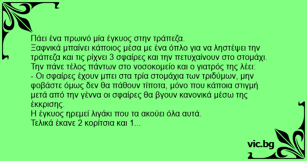 Πάει ένα πρωινό μία έγκυος στην τράπεζα.