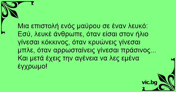 Εσύ, λευκέ άνθρωπε, όταν είσαι στον ήλιο γίνεσαι κόκκινος, όταν κρυώνεις γίνεσαι μπλε, όταν αρρωσταίνεις γίνεσαι πράσινος...