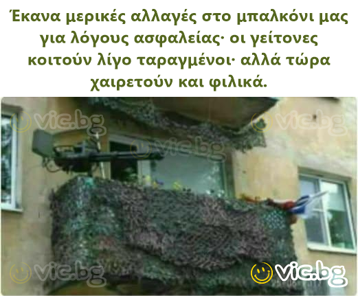 Направив неколку промени на нашиот балкон поради безбедноста; соседите гледаат малку збунето; но сега поздравуваат и пријателски.