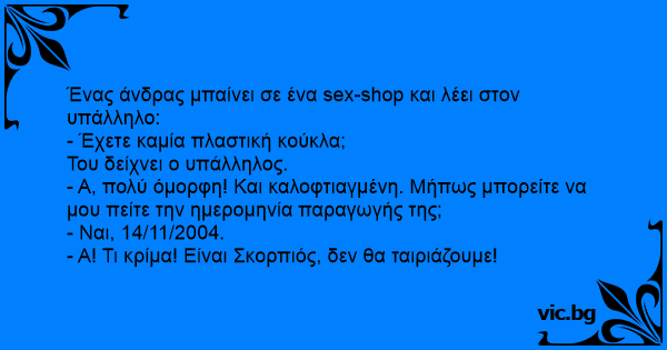 Ένας άνδρας μπαίνει σε ένα sеx-shop και λέει στον υπάλληλο: