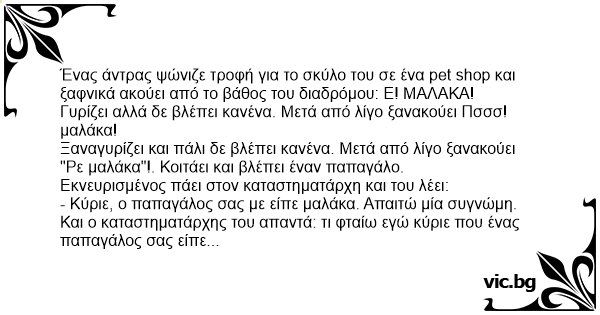 Και ο καταστηματάρχης του απαντά: τι φταίω εγώ κύριε που ένας παπαγάλος σας είπε μαλάκα; Ίσως να κατάλαβε τι είστε και απλώς το φώναξε!