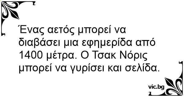 Ένας αετός μπορεί να διαβάσει μια εφημερίδα από 1400 μέτρα. Ο Τσακ Νόρις μπορεί να γυρίσει και σελίδα.