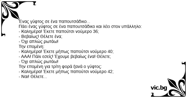 Πάει ένας γύφτος σε ένα παπουτσάδικο και λέει στον υπάλληλο: