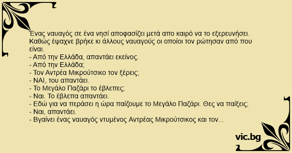 - Βγαίνει ένας ναυαγός ντυμένος Αντρέας Μικρούτσικος και τον ρωτάει: