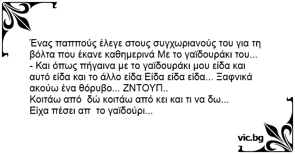 Ένας παππούς έλεγε στους συγχωριανούς του για τη βόλτα που έκανε καθημερινά Με το γαϊδουράκι του...