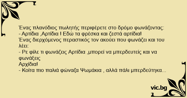 - Ρε φίλε τι φωνάζεις Αρτίδια ,μπορεί να μπερδευτείς και να φωνάξεις