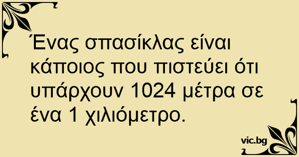 Ένας σπασίκλας είναι κάποιος που πιστεύει ότι υπάρχουν 1024 μέτρα σε ένα 1 χιλιόμετρο.