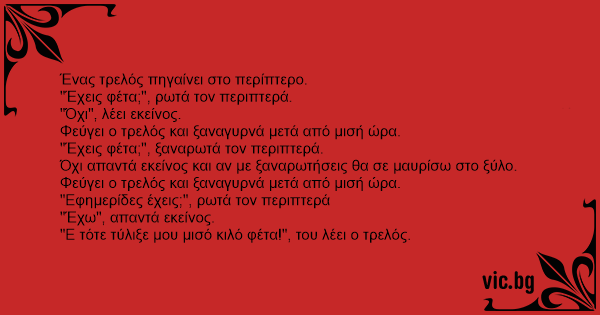 "Ε τότε τύλιξε μου μισό κιλό φέτα!", του λέει ο τρελός.