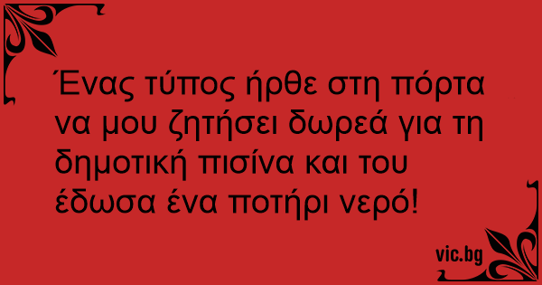 Ένας τύπος ήρθε στη πόρτα να μου ζητήσει δωρεά για τη δημοτική πισίνα και του έδωσα ένα ποτήρι νερό!
