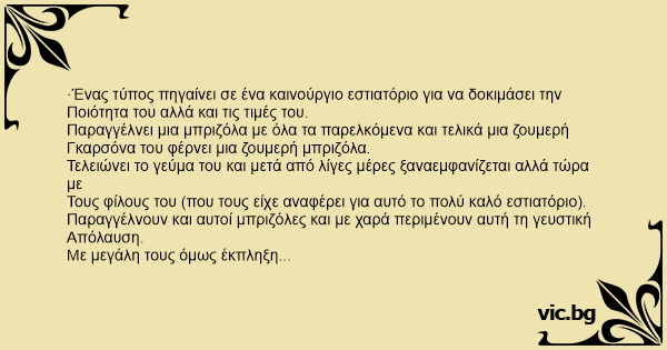 ·Ένας τύπος πηγαίνει σε ένα καινούργιο εστιατόριο για να δοκιμάσει την