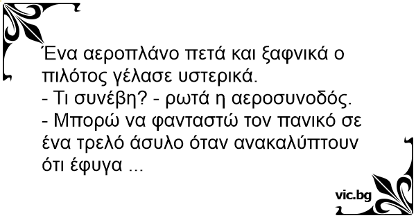 Ένα αεροπλάνο πετά και ξαφνικά ο πιλότος γέλασε υστερικά.