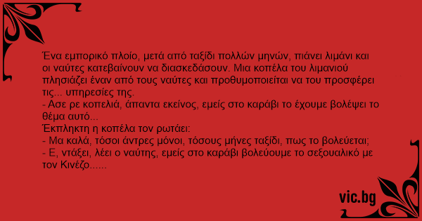 - Ασε ρε κοπελιά, άπαντα εκείνος, εμείς στο καράβι το έχουμε βολέψει το θέμα αυτό...