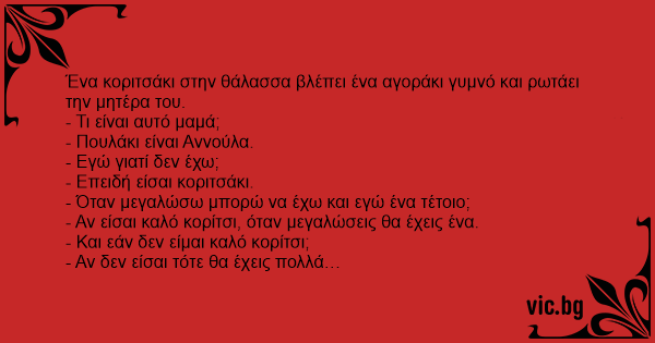 Ένα κοριτσάκι στην θάλασσα βλέπει ένα αγοράκι γυμνό και ρωτάει την μητέρα του.