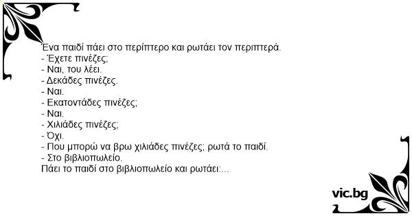 - Που μπορώ να βρω χιλιάδες πινέζες; ρωτά το παιδί.