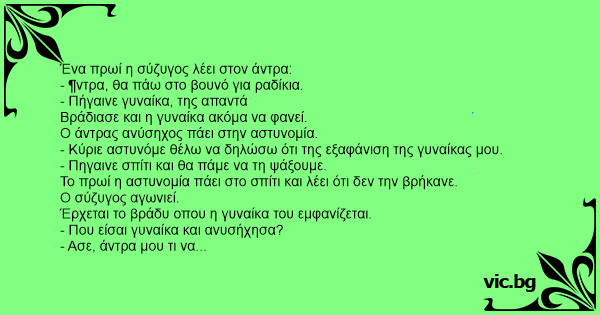 Ένα πρωί η σύζυγος λέει στον άντρα: