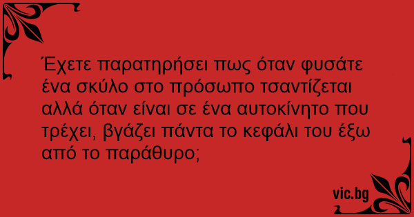 Έχετε παρατηρήσει πως όταν φυσάτε ένα σκύλο στο πρόσωπο τσαντίζεται αλλά όταν είναι σε ένα αυτοκίνητο που τρέχει, βγάζει πάντα το κεφάλι του έξω από το παράθυρο;