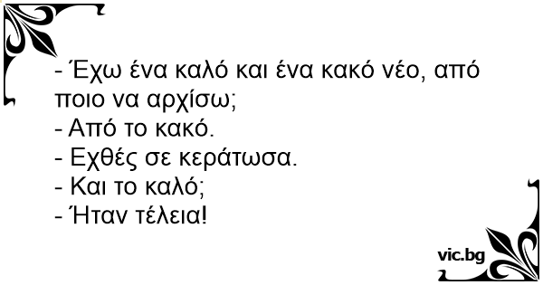 - Έχω ένα καλό και ένα κακό νέο, από ποιο να αρχίσω;
