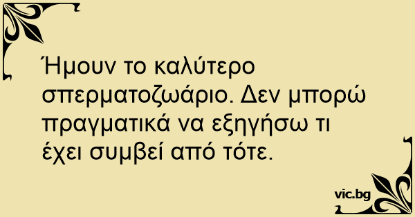 Ήμουν το καλύτερο σπερματοζωάριο. Δεν μπορώ πραγματικά να εξηγήσω τι έχει συμβεί από τότε.