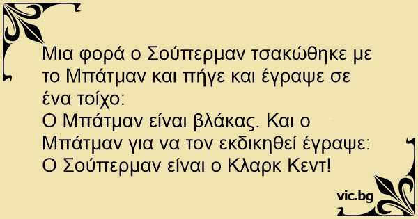 Ο Μπάτμαν είναι βλάκας. Και ο Μπάτμαν για να τον εκδικηθεί έγραψε: Ο Σούπερμαν είναι ο Κλαρκ Κεντ!