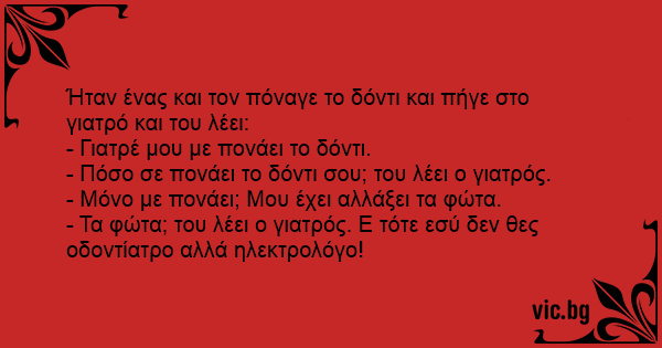 Ήταν ένας και τον πόναγε το δόντι και πήγε στο γιατρό και του λέει: