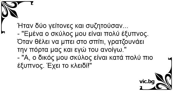 - "Α, ο δικός μου σκύλος είναι κατά πολύ πιο έξυπνος. Έχει το κλειδί!"