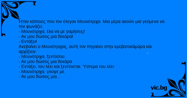 Ήταν κάποιος που τον έλεγαν Μουνότριχα. Μια μέρα ακούει μια γκόμενα να τον φωνάζει: