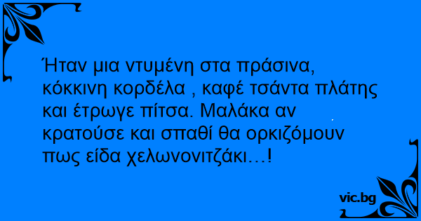 Ήταν μια ντυμένη στα πράσινα, κόκκινη κορδέλα , καφέ τσάντα πλάτης και έτρωγε πίτσα. Μαλάκα αν κρατούσε και σπαθί θα ορκιζόμουν πως είδα χελωνονιτζάκι…!