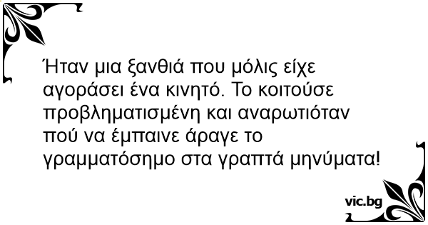 Ήταν μια ξανθιά που μόλις είχε αγοράσει ένα κινητό. Το κοιτούσε προβληματισμένη και αναρωτιόταν πού να έμπαινε άραγε το γραμματόσημο στα γραπτά μηνύματα!