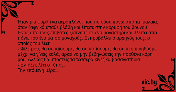 Την επόμενη μέρα λοιπόν, καθώς έκανε την βόλτα του στον κήπο του μοναστηριού, βλέπει μπροστά του την πανέμορφη, κούκλα κόρη του αρχηγού. Ε δεν άντεξε, και με διάφορες γαλιφιές κλπ. την κουτούπωσε!