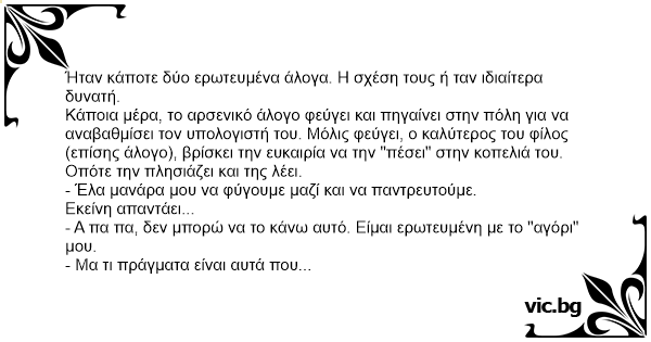 Ήταν κάποτε δύο ερωτευμένα άλογα. Η σχέση τους ή ταν ιδιαίτερα δυνατή.