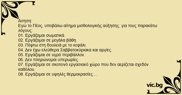 Εγώ το Πέος, υποβάλω αίτημα μισθολογικής αύξησης, για τους παρακάτω λόγους: