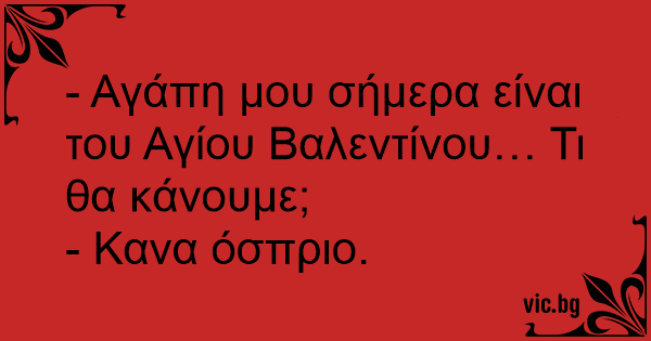 - Αγάπη μου σήμερα είναι του Αγίου Βαλεντίνου… Τι θα κάνουμε;