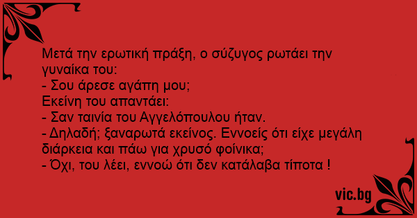 Μετά την ερωτική πράξη, ο σύζυγος ρωτάει την γυναίκα του: