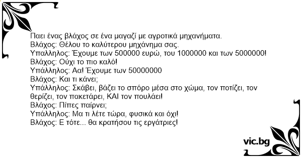Παει ένας βλάχος σε ένα μαγαζί με αγροτικά μηχανήματα.