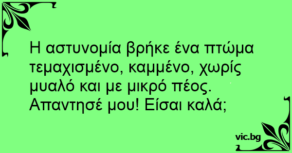 Η αστυνομία βρήκε ένα πτώμα τεμαχισμένο, καμμένο, χωρίς μυαλό και με μικρό πέος. Απαντησέ μου! Είσαι καλά;