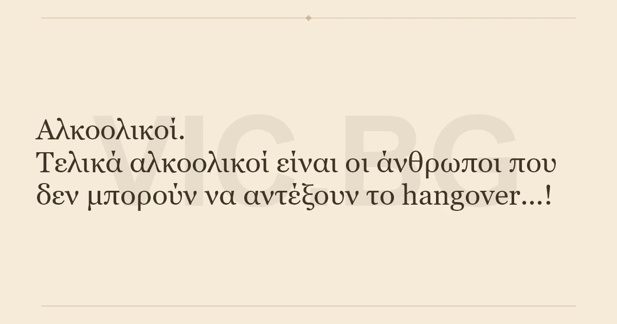 Αλκοολικοί.Tελικά αλκοολικοί είναι οι άνθρωποι που δεν μπορούν να αντέξουν το hangover...! 0 0 0 Διάφορα ανέκδοτα