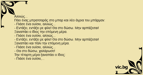 - Ε, και αλλιώς τί; λέει αγανακτισμένος ο μπάρμαν.