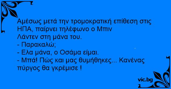 - Ελα μάνα, ο Οσάμα είμαι.