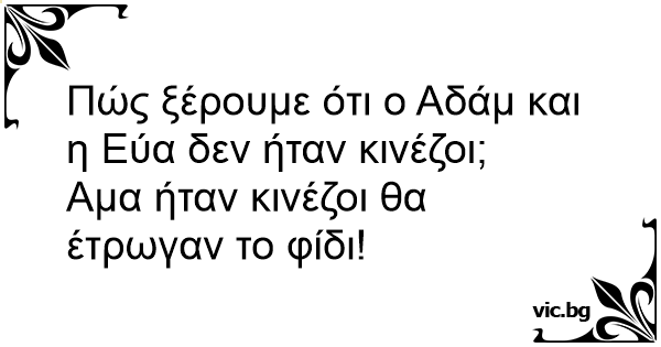 Αδάμ & Εύα Κινέζοι; Οι Kινέζοι Πρωτόπλαστοι Ако Адам и Ева бяха китайци, сега щяхме да сме в рая още. Те биха изяли змията, вместо ябълката Если бы Адам и Ева были китайцами, мы бы сейчас были в Раю. Они съели бы змею, а плод оставили. Заклучок на еден истражувач за историјата на човечкиот род: - Да беа Кинези Адам и Ева, нашата историја би била сосема поинаква. - Би го оставиле јаболкото да виси на гранка, a би ја изеле змијата.
