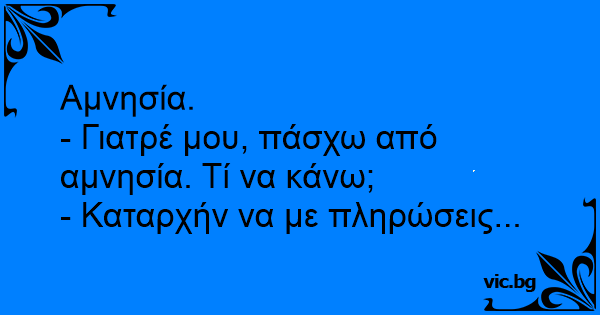 - Γιατρέ μου, πάσχω από αμνησία. Τί να κάνω;