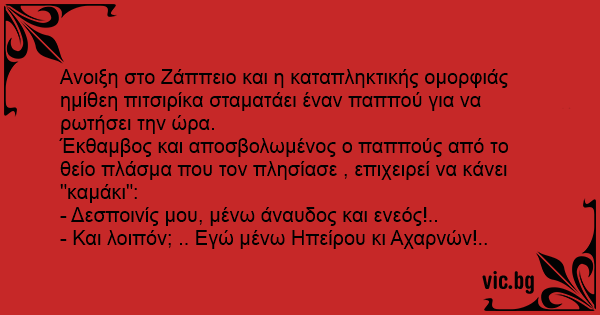 Ανοιξη στο Ζάππειο και η καταπληκτικής ομορφιάς ημίθεη πιτσιρίκα σταματάει έναν παππού για να ρωτήσει την ώρα.