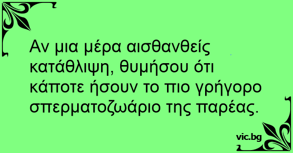 Αν μια μέρα αισθανθείς κατάθλιψη, θυμήσου ότι κάποτε ήσουν το πιο γρήγορο σπερματοζωάριο της παρέας.
