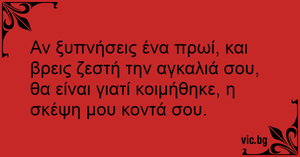 Αν ξυπνήσεις ένα πρωί, και βρεις ζεστή την αγκαλιά σου, θα είναι γιατί κοιμήθηκε, η σκέψη μου κοντά σου.