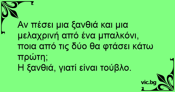 Αν πέσει μια ξανθιά και μια μελαχρινή από ένα μπαλκόνι, ποια από τις δύο θα φτάσει κάτω πρώτη;