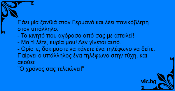 Πάει μία ξανθιά στον Γερμανό και λέει πανικόβλητη στον υπάλληλο: