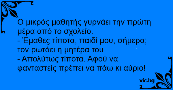 - Έμαθες τίποτα, παιδί μου, σήμερα; τον ρωτάει η μητέρα του.