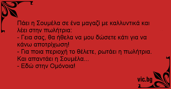 Πάει η Σουμέλα σε ένα μαγαζί με καλλυντικά και λέει στην πωλήτρια:
