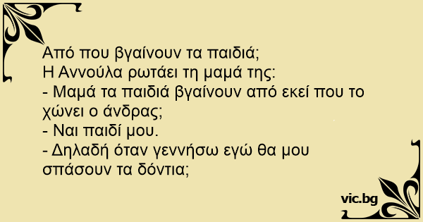 - Μαμά τα παιδιά βγαίνουν από εκεί που το χώνει ο άνδρας;