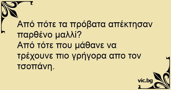 Από πότε τα πρόβατα απέκτησαν παρθένο μαλλί? Από τότε που μάθανε να τρέχουνε πιο γρήγορα απο τον τσοπάνη.