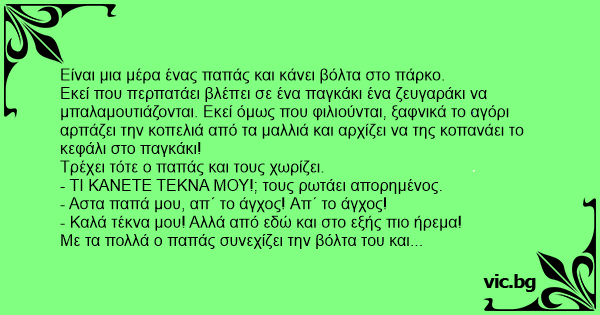 Είναι μια μέρα ένας παπάς και κάνει βόλτα στο πάρκο.